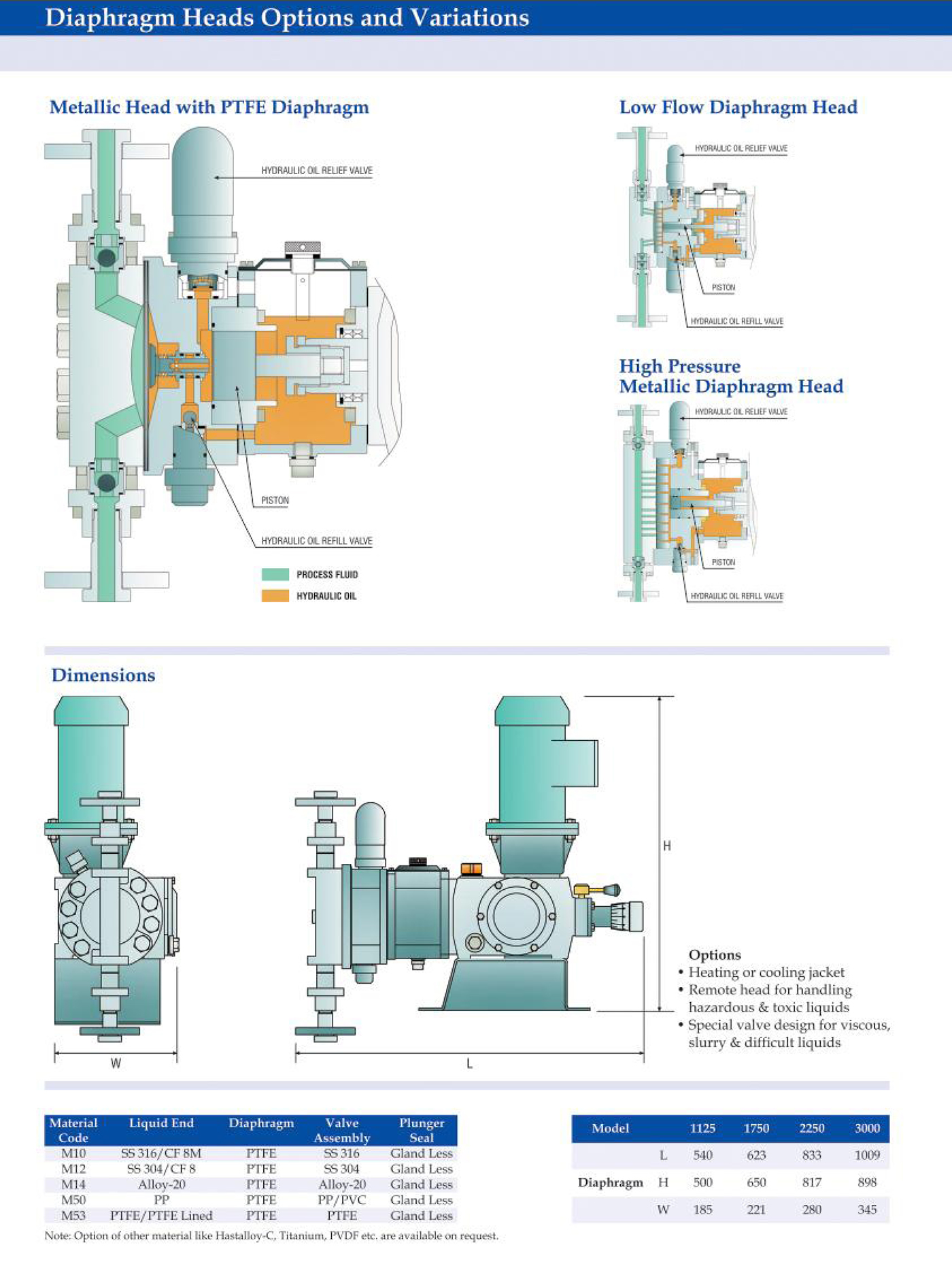 Hydraulically flexed diaphragm metering pump, single and double diaphragm type